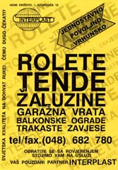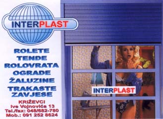 Poduzeće “INTERPLAST” bavi se izradom različitih sjenila na prozorima, balkonima i terasama, te zatvaranjem ulaznih otvora na garažama i halama. Između ostalog nudimo opremanje stambenih i poslovnih objekata roletama, žaluzinama, zavjesama, tendama, rolo-vratima i ogradama. Naši proizvodi izrađeni su od kvalitetnog uvoznog materijala, a usluga je stručna i pouzdana. Radimo isključivo po narudžbi i željenim dimenzijama, a kupcu ili korisniku dajemo izbor materijala, boje i načina izvedbe. |